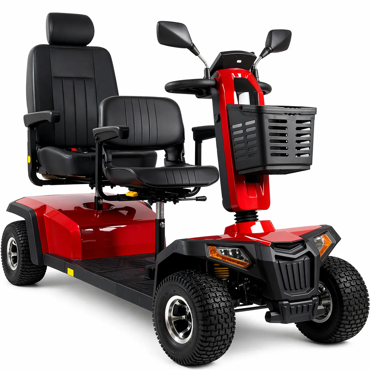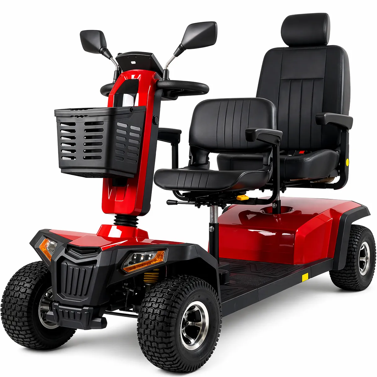 De Mega 1400E Tandem Scootmobiel – 2 Personen Limo staat voor vrijheid zonder grenzen – maar dan samen. Dit krachtige en luxe model is speciaal ontworpen voor twee personen die méér willen dan alleen mobiliteit. Of je nu dagelijks onderweg bent of samen lange tochten maakt: deze tandem scootmobiel biedt de perfecte combinatie van avontuur, comfort en betrouwbaarheid, ongeacht het terrein.