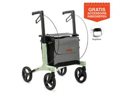 De rollator wordt volledig voorgemonteerd geleverd. U hoeft alleen de tas te bevestigen en de handvatten af te stellen. Binnen enkele minuten klaar voor gebruik.