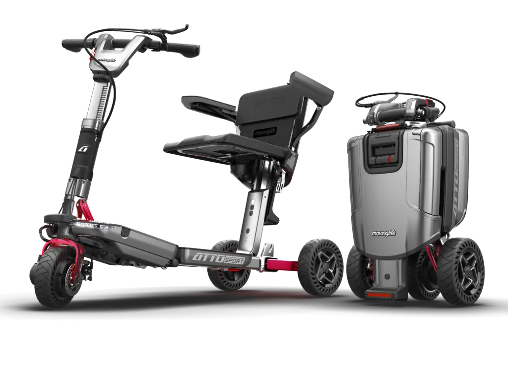 Sportieve, lichte en opvouwbare scooter. Nog verder, nog sneller en nog praktischer met de ATTO SPORT Scooter. Het topmodel van Moving Life: elegant, krachtig en ideaal voor onderweg.Lees meer