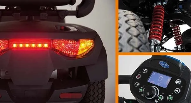 De Invacare Comet Pro 4-Wiel Scootmobiel werd onderworpen aan onafhankelijke Duitse TÜV laboratoriumtests. Dit geeft u het nodige vertrouwen en geruststelling tijdens het rijden. Bovendien verschaffen geavanceerde veiligheidsvoorzieningen, zoals een twee-staps motor ontkoppelingshendel en de automatische snelheidsreductie, extra zekerheid, waar u ook naar toe gaat.