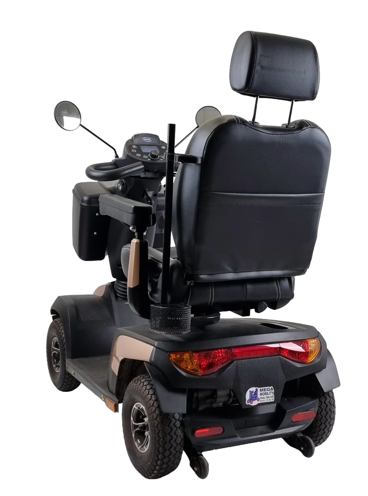 De Invacare Comet Pro 4 -Wiel Scootmobiel van invacare maakt het mogelijk om zorgeloos door de stad heen te toeren of zelfs verder weg te gaan. De Invacare Comet Pro 4-Wiel Scootmobiel heeft zeer goede kenmerken om buitenshuis mee op pad te gaan; een krachtige motor en vele veilige innovaties. De krachtige motor met grote accu’s zorgen ervoor dat u zich geen zorgen hoeft te maken over wanneer u weer naar huis moet. Met een maximaal van 15 km/h zorgt het ervoor dat u kunt gaan en staan waar u wilt en met een bereik van maximaal 55 km.