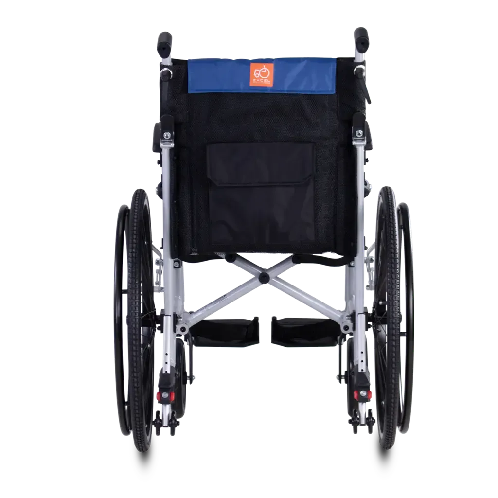 Om ervoor te zorgen dat de rolstoel makkelijk mee te nemen is met bijvoorbeeld de auto, is de Excel G-Lite Pro” uitgevoerd met een half neerklapbare rugleuning. Het gedeelte van de rugleuning dat boven de armleuningen uitsteekt kunt u eenvoudig naar beneden klappen. Hierdoor past de rolstoel Excel G-Lite pro 24” in vrijwel iedere auto.