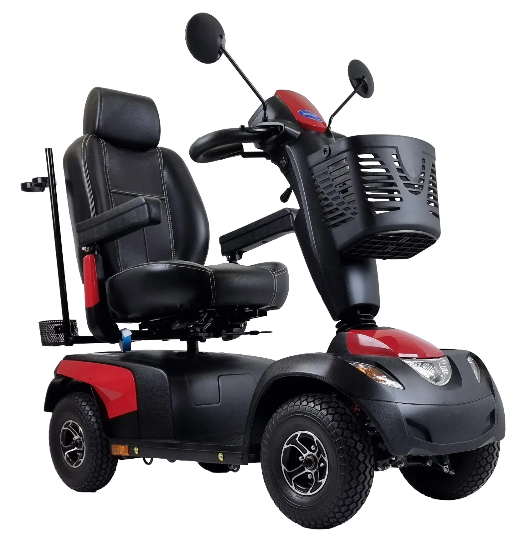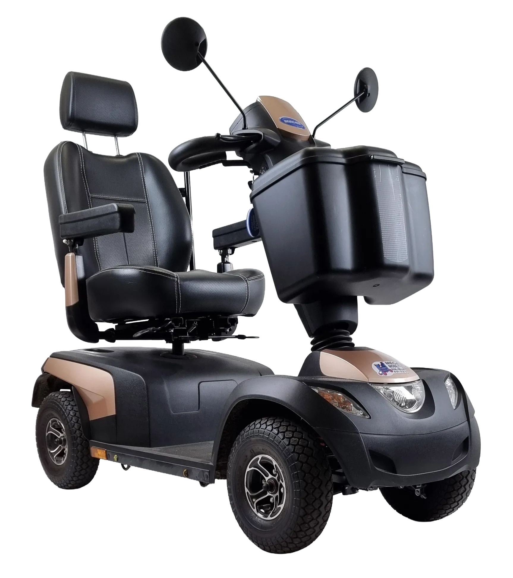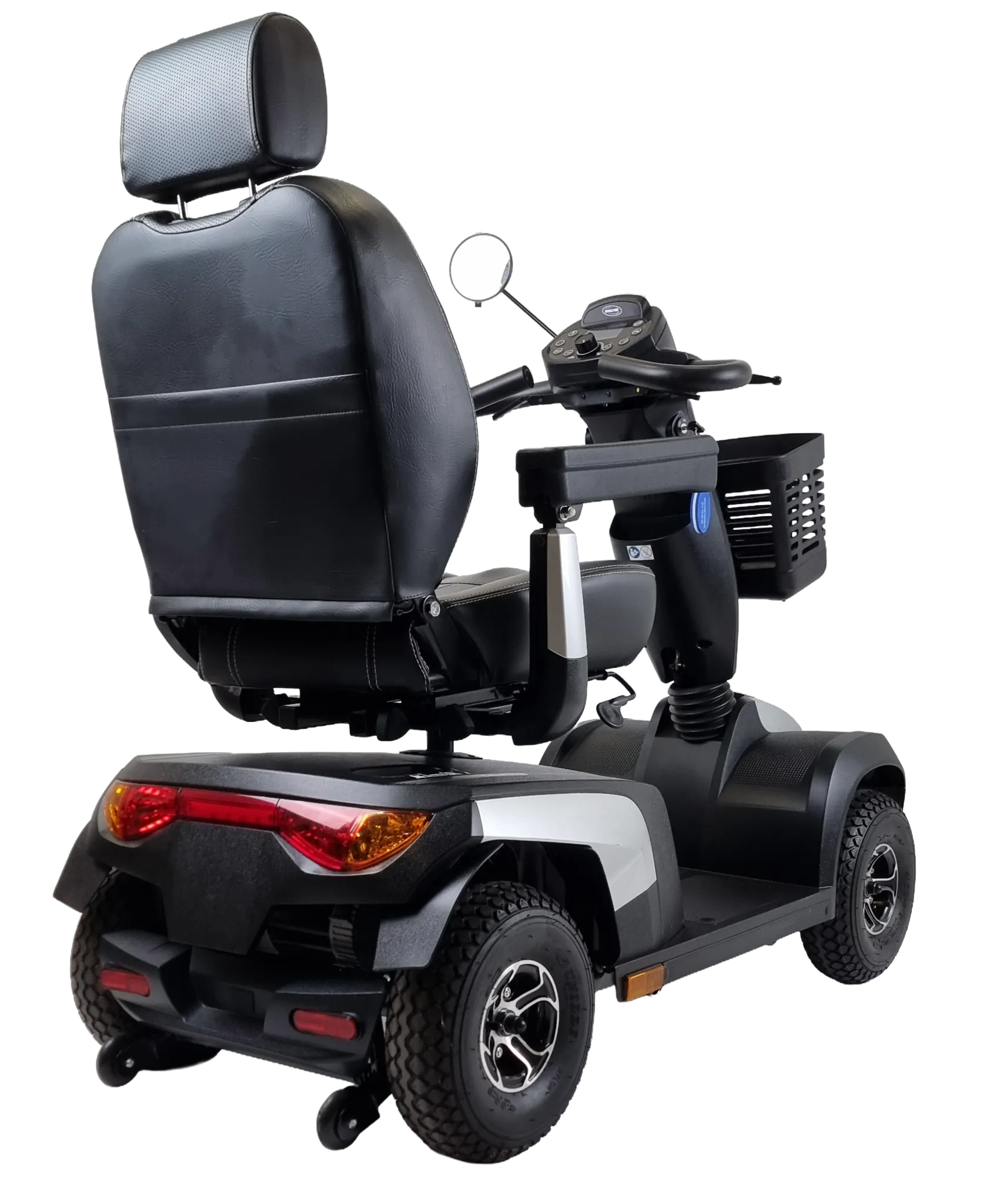 De Invacare Comet Pro 4 -Wiel Scootmobiel van invacare maakt het mogelijk om zorgeloos door de stad heen te toeren of zelfs verder weg te gaan. De Invacare Comet Pro 4-Wiel Scootmobiel heeft zeer goede kenmerken om buitenshuis mee op pad te gaan; een krachtige motor en vele veilige innovaties. De krachtige motor met grote accu’s zorgen ervoor dat u zich geen zorgen hoeft te maken over wanneer u weer naar huis moet. Met een maximaal van 15 km/h zorgt het ervoor dat u kunt gaan en staan waar u wilt en met een bereik van maximaal 55 km.