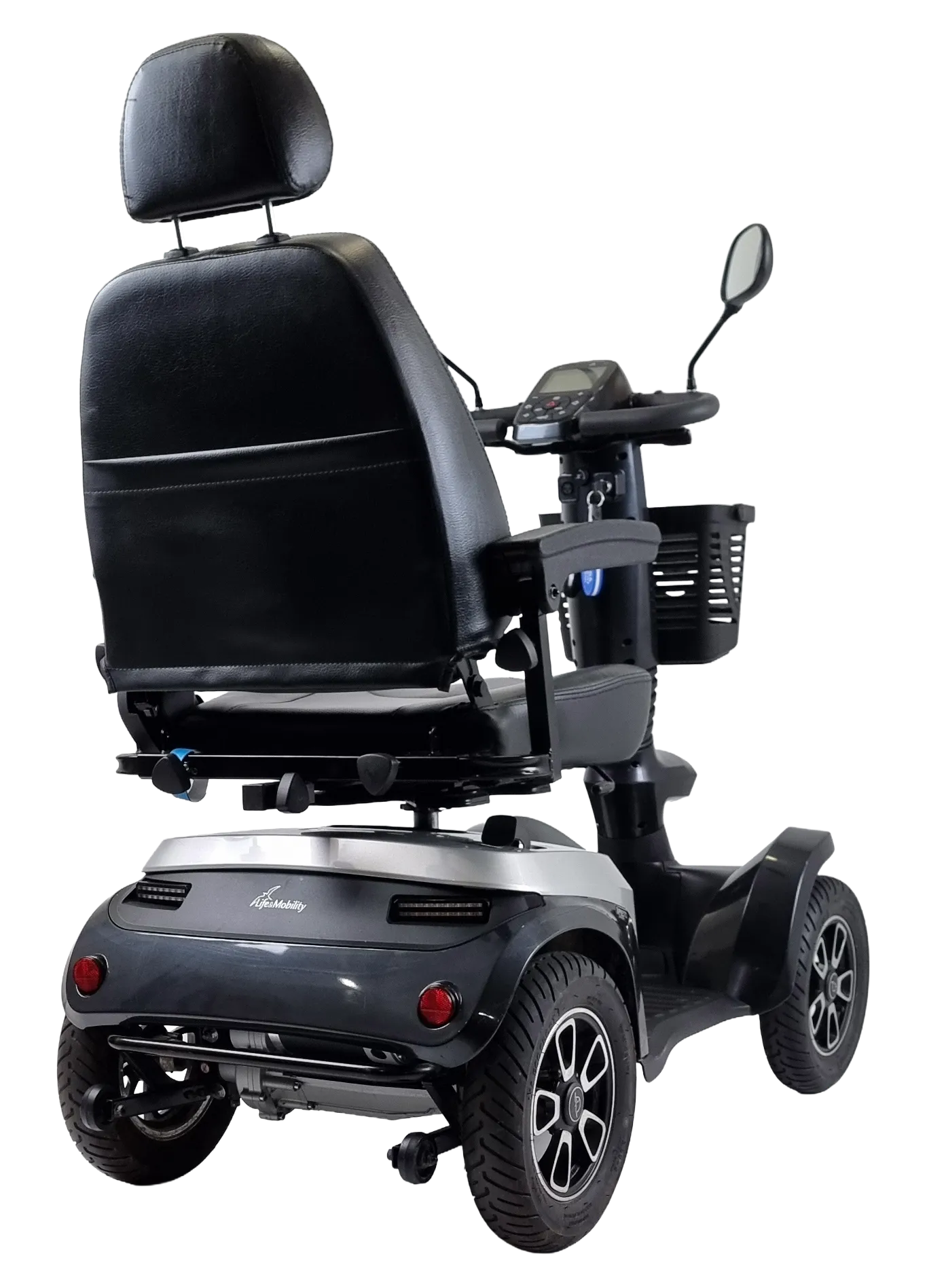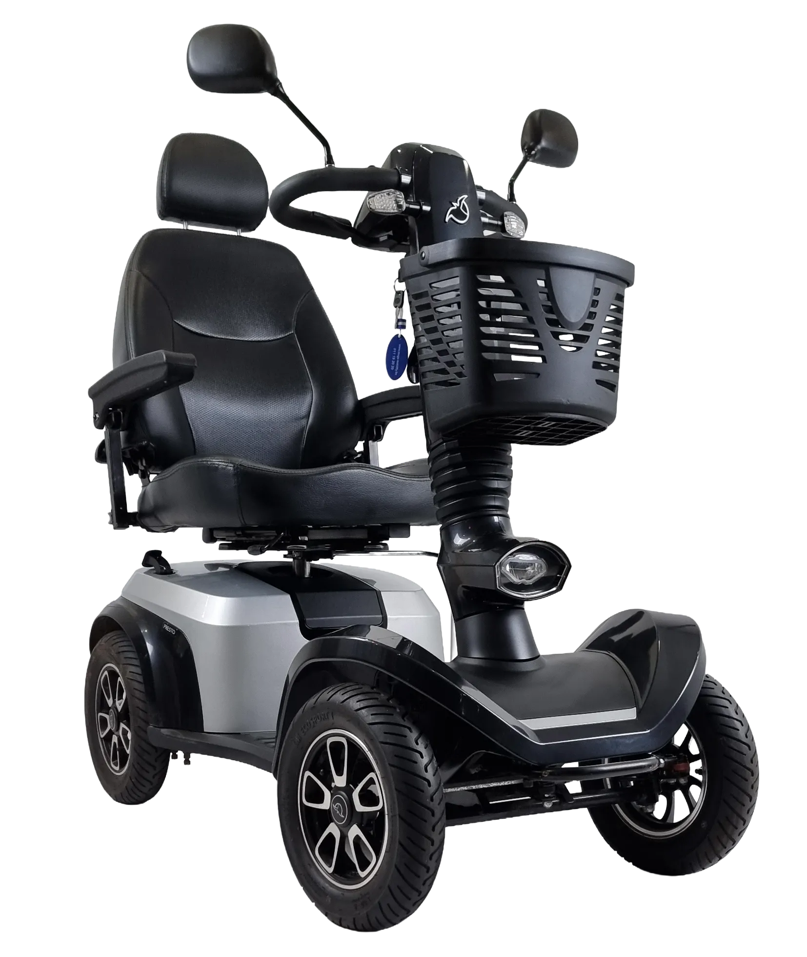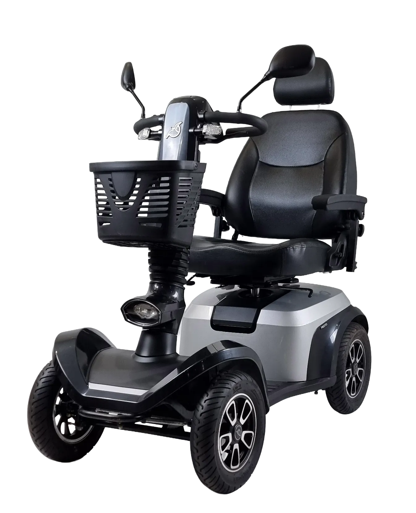 De DEMO Scootmobiel Presto 15km/u wordt geleverd met nieuwe accu’s (80Ah) en garantie op de scootmobiel.