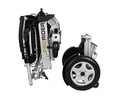 Met de ProRiders van e-Ability kunt u weer geheel zelfstandig op pad. De ProRider is een moderne elektrische rolstoel die door middel van een simpele handeling opgeklapt kan worden tot een klein pakket. Dankzij de grote, massieve banden is de ProRider ook uitermate geschikt om mee te rijden op ongelijke of onverharde wegen. De ProRider is standaard uitgevoerd met twee uitneembare, krachtige accu’s, wat ervoor zorgt dat de actieradius een riante 30 kilometer betreft. De ProRider is te besturen met een intuïtieve joystickbesturing waardoor de ProRider om zijn eigen as kan draaien. Ideaal voor het draaien in bijvoorbeeld een lift of het manoeuvreren in winkels. De ProRider heeft een robuust frame dat ervoor zorgt dat het maximale gebruikersgewicht 160 kg is. Daarnaast past deze in iedere auto en mag meegenomen worden in het vliegtuig.