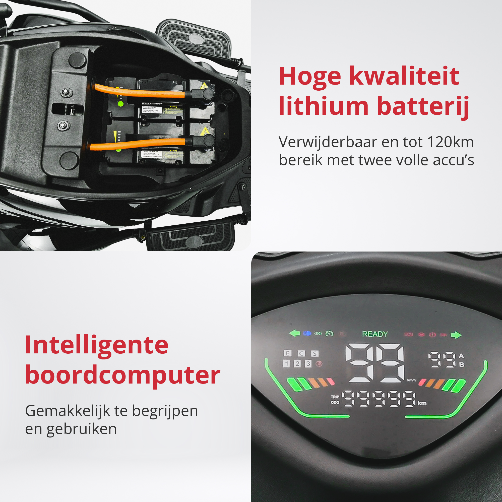 ✔ Actieradius tot 120 km – ideaal voor lange ritten zonder tussentijds opladen