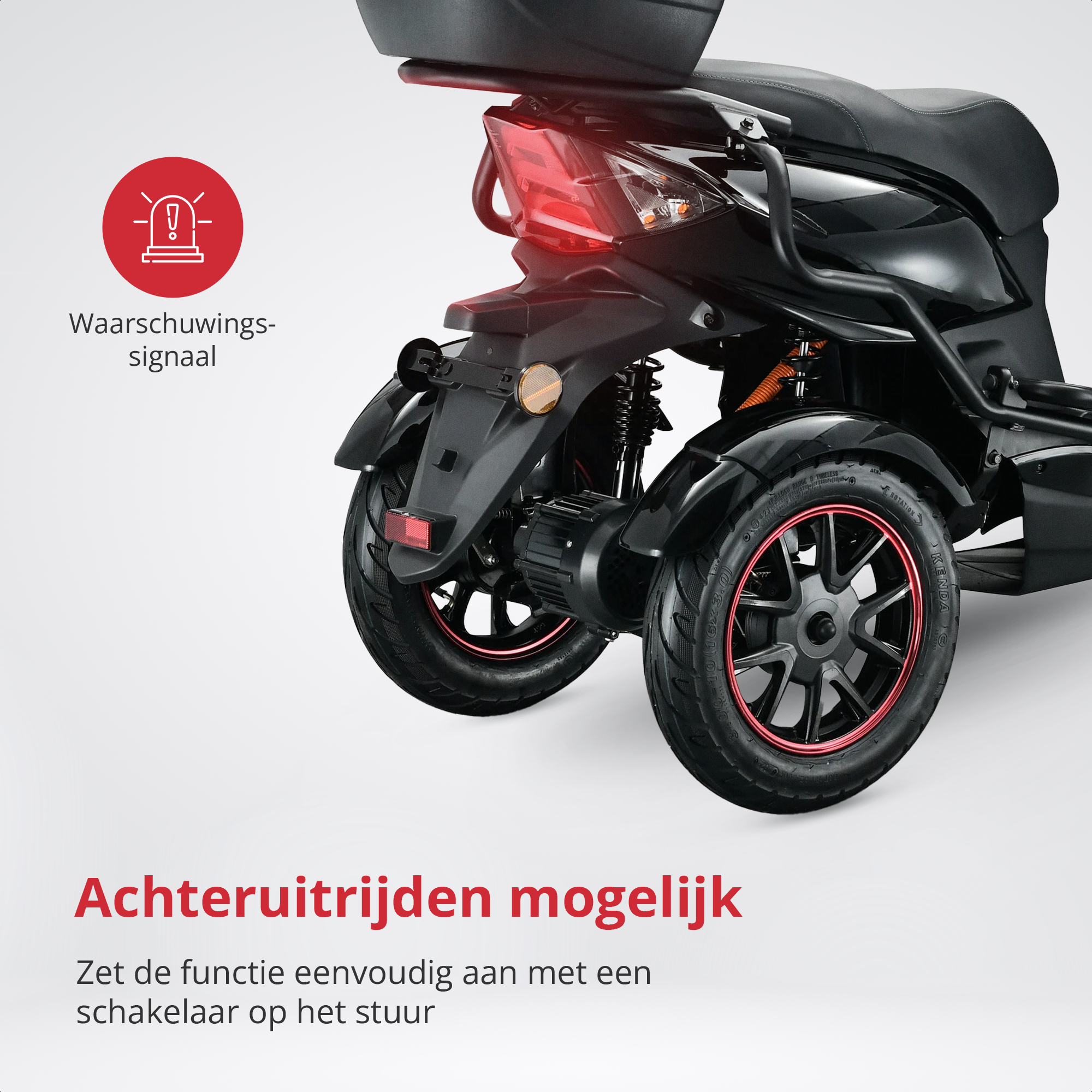 ✔ Achteruitrijfunctie met waarschuwingssignaal – voor veilig en eenvoudig manoeuvreren