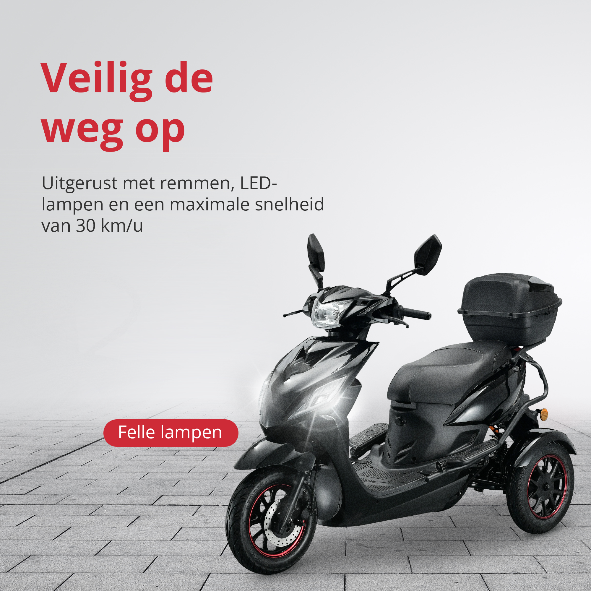 ✔ Veilig en betrouwbaar – schijfremmen voor, trommelremmen achter en volledig LED-verlichting
