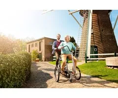 Dankzij het derde wiel kunnen beide berijders ook blijven zitten als de tandem stilstaat. Op- en afstappen gaat bovendien makkelijk, doordat deze tandem heel stabiel is. Voor extra ruimte bij het op- en afstappen kun je het voorgedeelte wegklappen. Bij deze tandem kan alleen de begeleider sturen, maar de passagier heeft wel een stuur voor houvast. Daarnaast bepaalt de begeleider via de inschakelbare vrijloop of de passagier mee kan trappen. Met de gewone vrijloop heeft de passagier zelf de keuze om al dan niet mee te trappen. Een tandem om samen van het fietsen te genieten zonder zorgen over veiligheid.