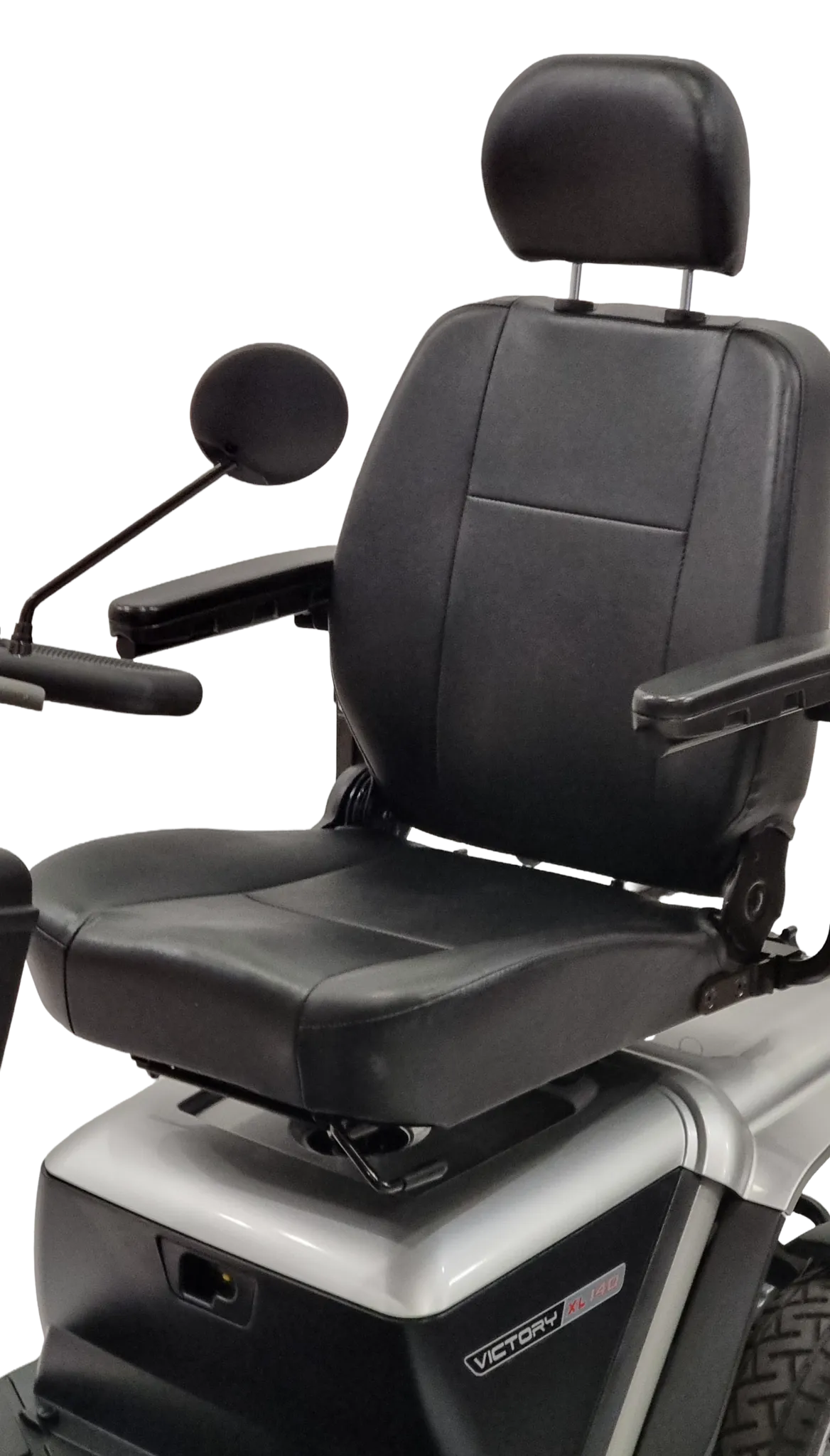 De Pride Victory XL 140 Scootmobiel is het grootste model onder de nieuwe generatie scootmobielen. Met zijn snelheid tot 17 km/u en een actieradius van 50-60 km, is de Pride Victory XL 140 echt een scootmobiel voor de veeleisende scootmobiel gebruiker. De Pride Victory xl 140 Scootmobiel is uitgerust met instelbare stuurkolom en stoel, wat een geweldig zitcomfort en weggedrag opleverd. Deze scootmobiel is door zijn veelzijdigheid zeer geschikt voor de ervaren scootmobiel berijder!
