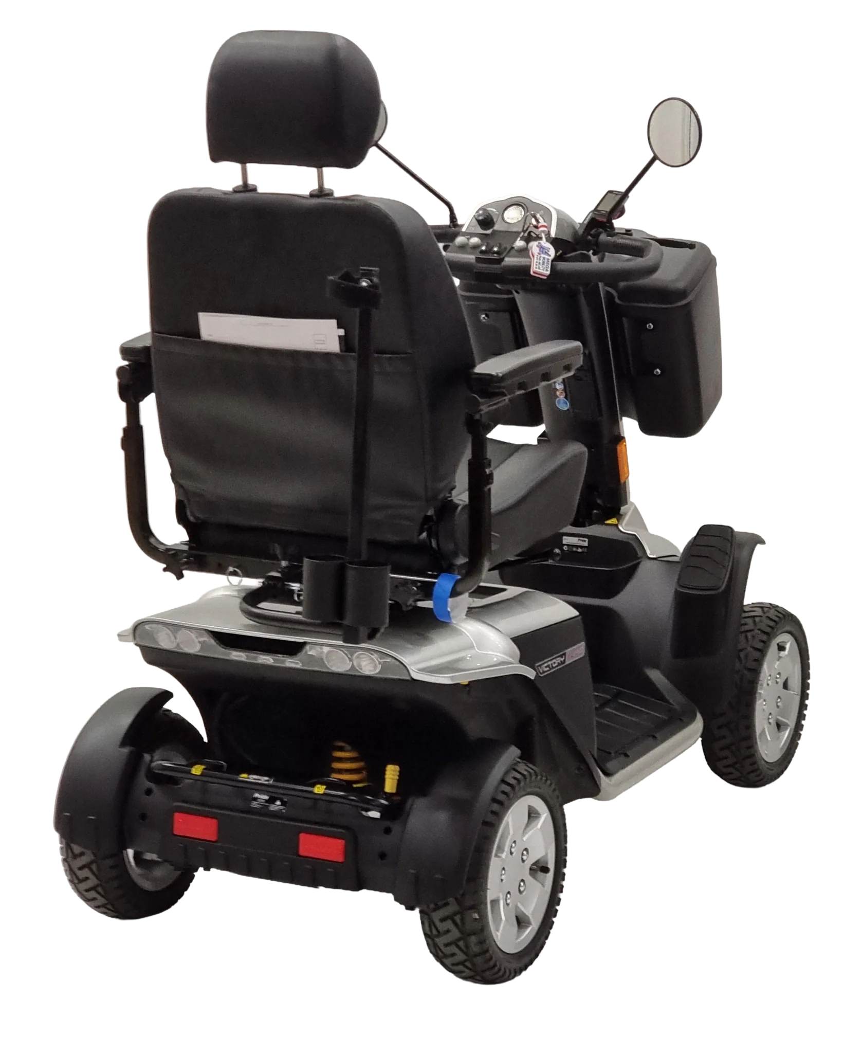 De Pride Victory XL 140 Scootmobiel is de ultieme mix van kracht en precisie en zit vol toepassingen van hoge kwaliteit, zoals volledige vering, platte profielbanden en een hydraulisch rem systeem.De Pride Victory XL 140 Scootmobiel kenmerkt een glanzende, agressieve stijl en een weelde aan standaard luxe zoals een doorlopend deltastuur en LED verlichting. Dit maakt de Pride Victory XL 140 Scootmobiel de ultieme scooter voor buitenshuis.